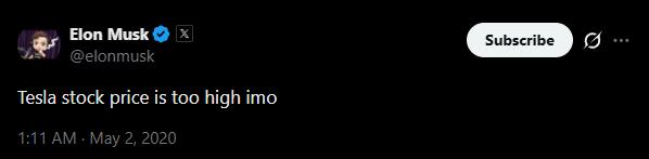 Screenshot when Elon Musk caused Tesla to plummet $60